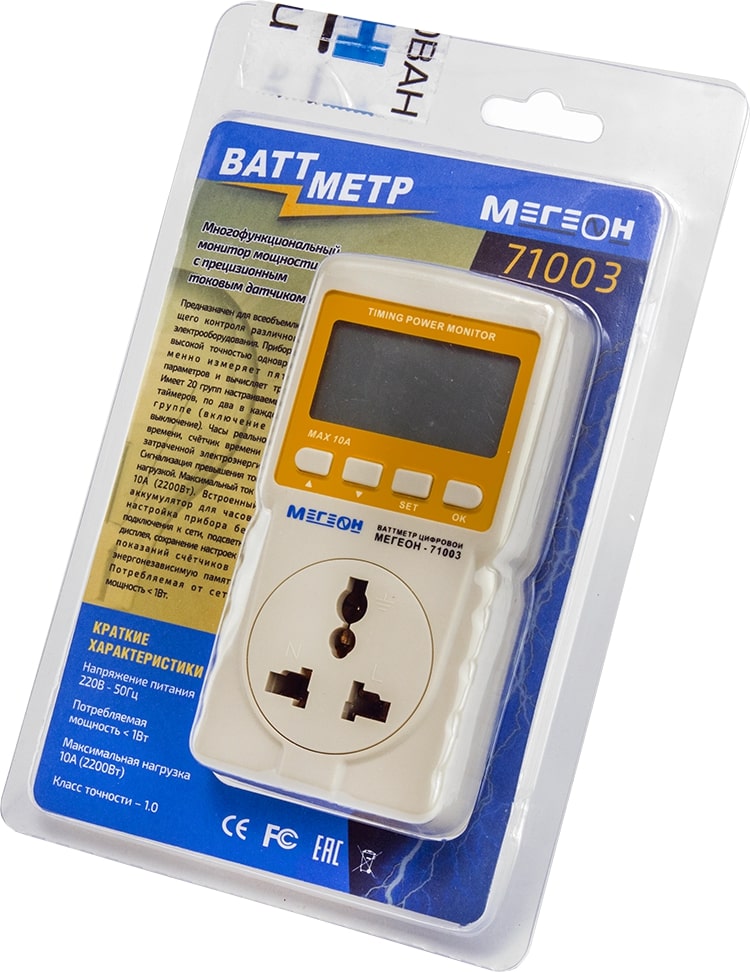 Представляем Вашему вниманию новинку от компании Мегеон — многофункциональный ваттметр Мегеон 71003. Прибор является высокоточным измерительным инструментом для контроля включения и выключения различных электронных потребителей с функцией отслеживания расхода электроэнергии. Аппаратная часть ваттметра основана на сверхточных микросхемах, имеется современный датчик тока. Благодаря этому, Мегеон 71003 может быть использован для проведения комплексной проверки состояния электронного оборудования.