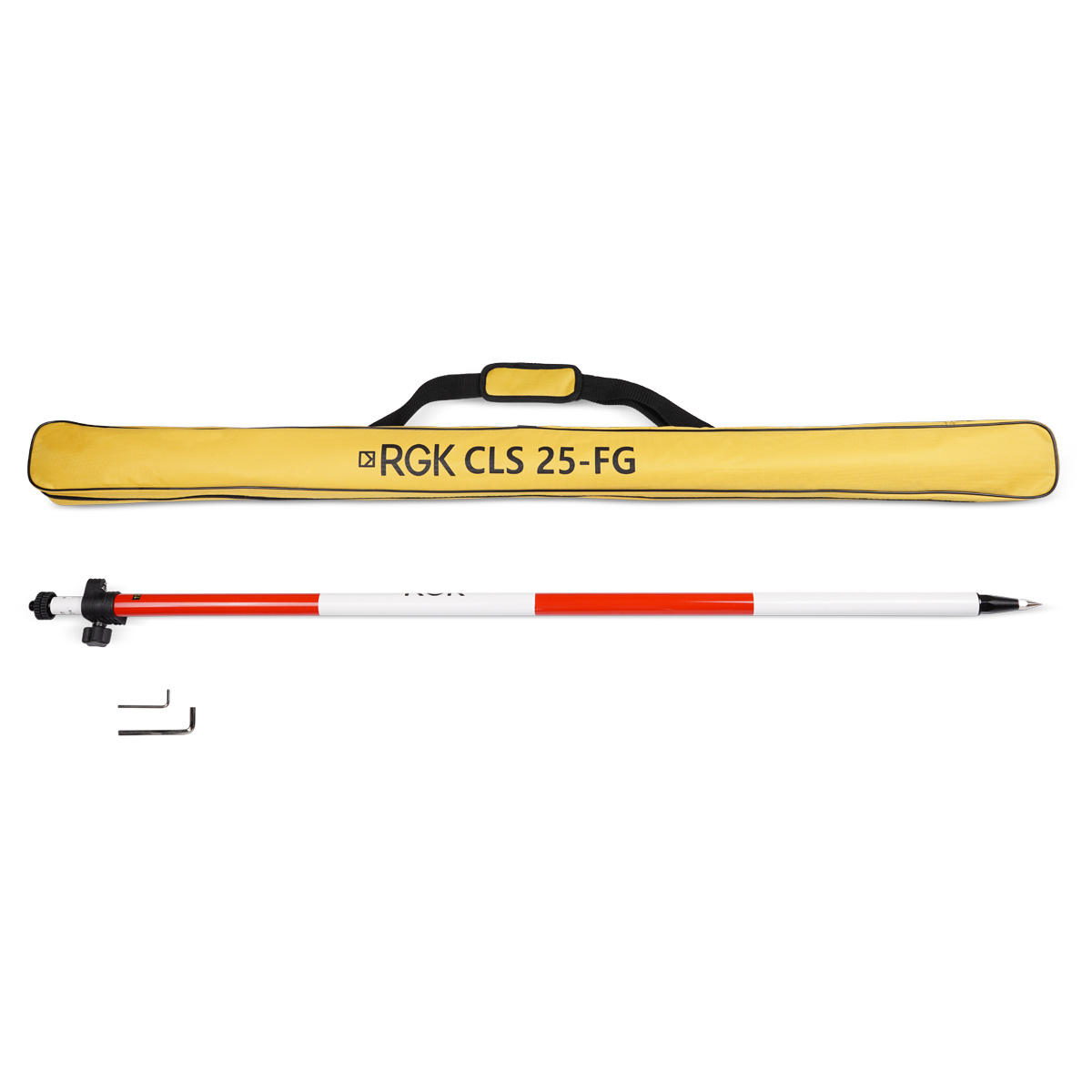Облегченная телескопическая веха RGK CLS25-FG, весом 1 кг, изготовленная из лёгкого непроводящего ток фибергласа с регулируемым пузырьковым уровнем, предназначена для установки оборудования и аксессуаров на высоте до 2,6 м. Оснащена надёжным винтовым фиксатором высоты. В комплекте с вехой идет чехол для транспортировки и насадка, позволяющая работать на нетвердом основании.