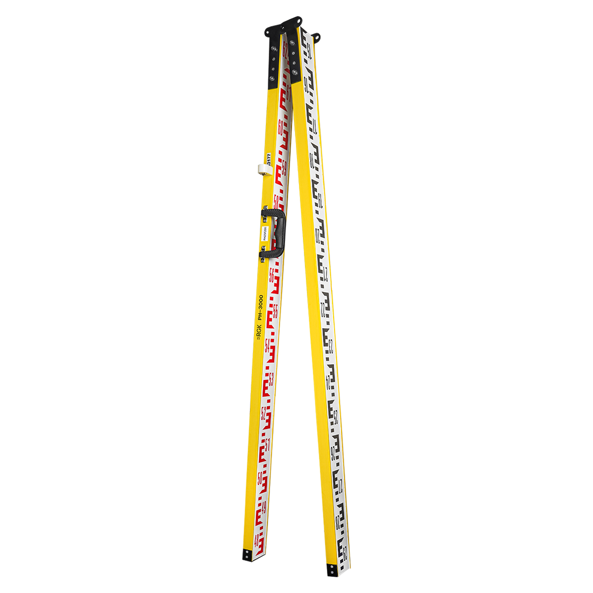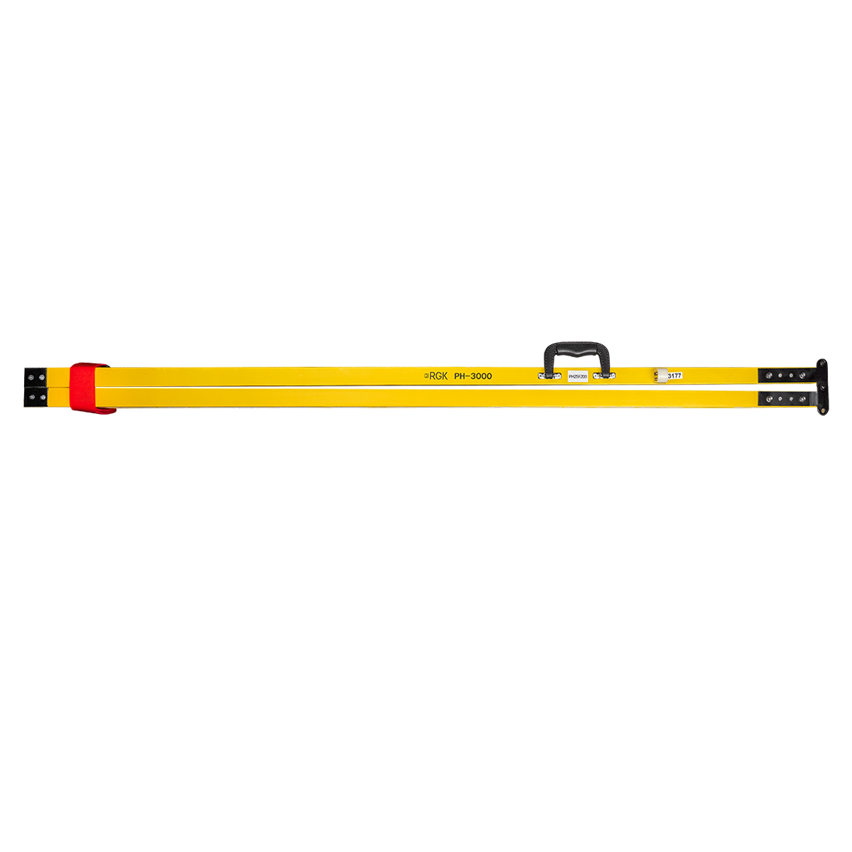 Складная двухсторонняя деревянная рейка 3 м с разницей пяток RGK PH-3000 выполнена по классической схеме из двух шарнирно соединенных брусьев, которые окантованы планками и снабжены металлическими пятками, защищающими торцы от истирания. В рабочем положении изделие раскладывается в прямую линию, позволяя считывать показания с шашечных E-шкал с лицевой и тыльной стороны, обеспечивая измерение превышений путем выполнения серии замеров с помощью оптических нивелиров.