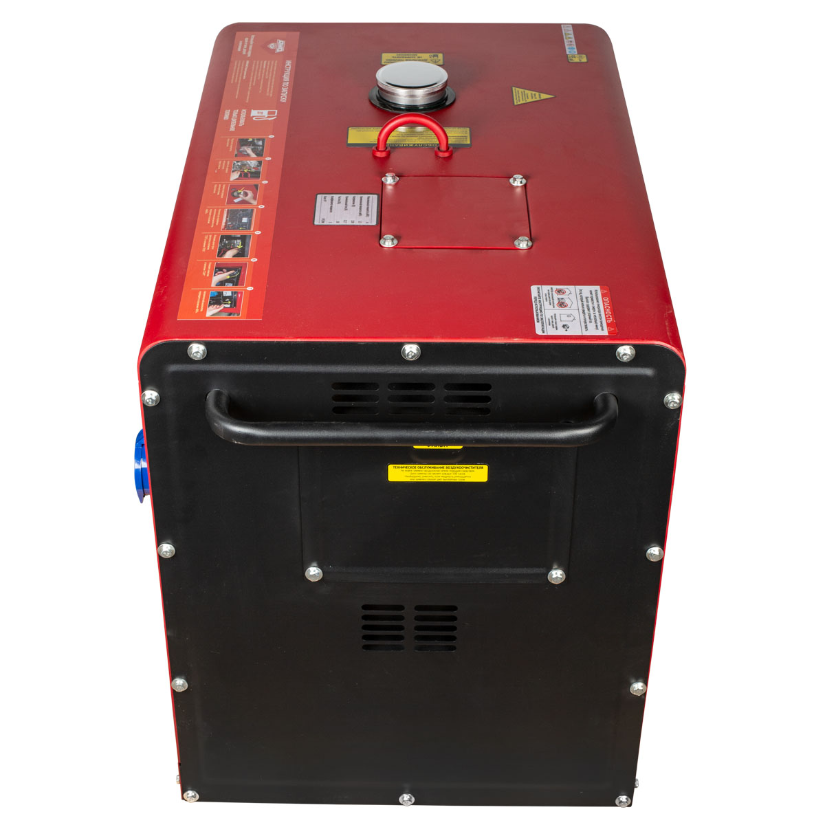 На передней панели дизель-генератор AMO ADG 6000EAS расположен выход постоянного тока 12 В, от которого можно зарядить аккумулятор автомобиля и другой техники.