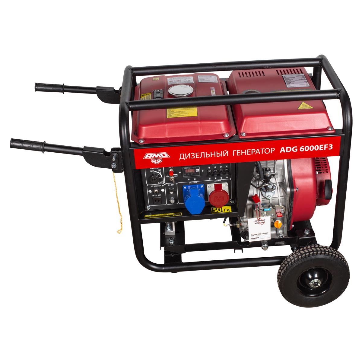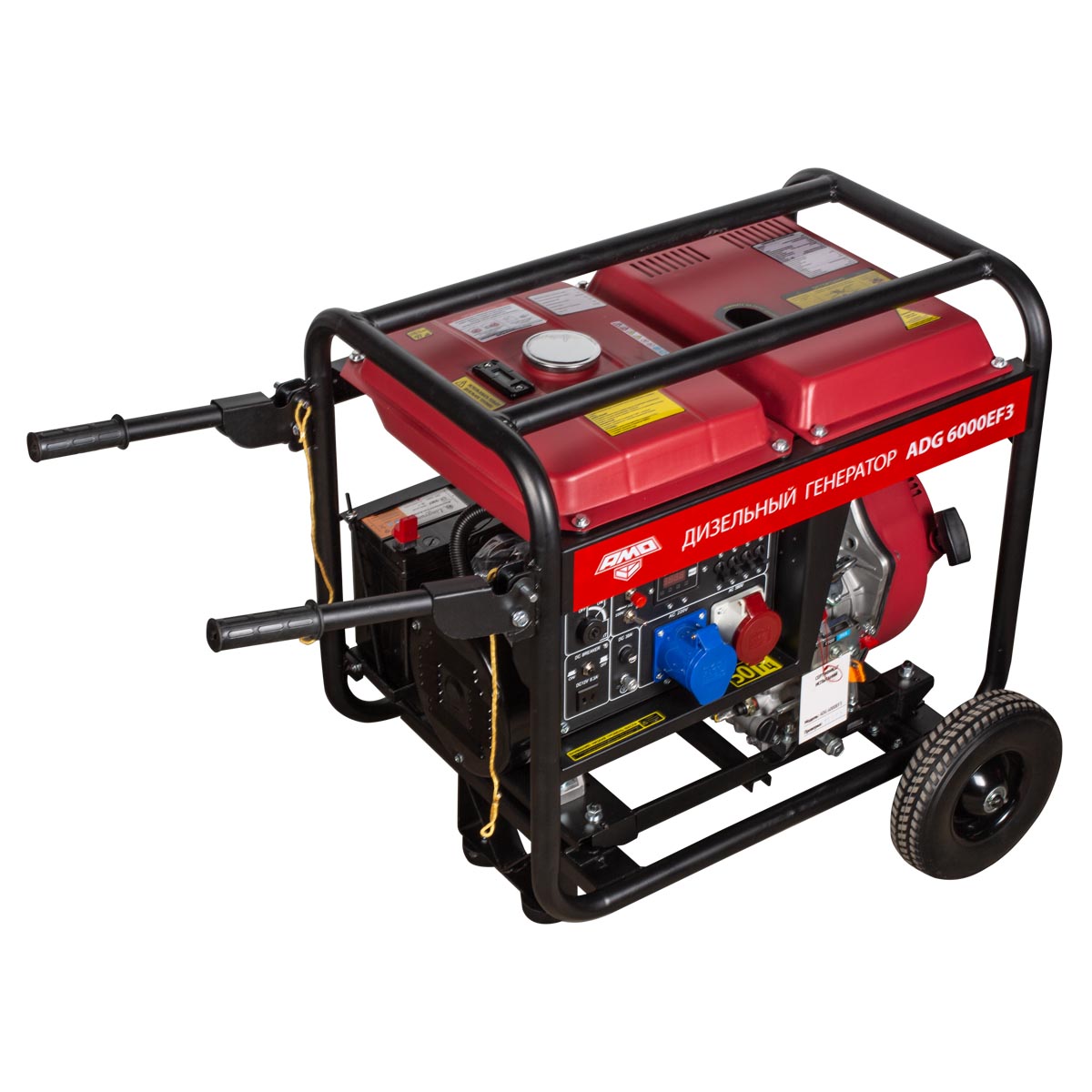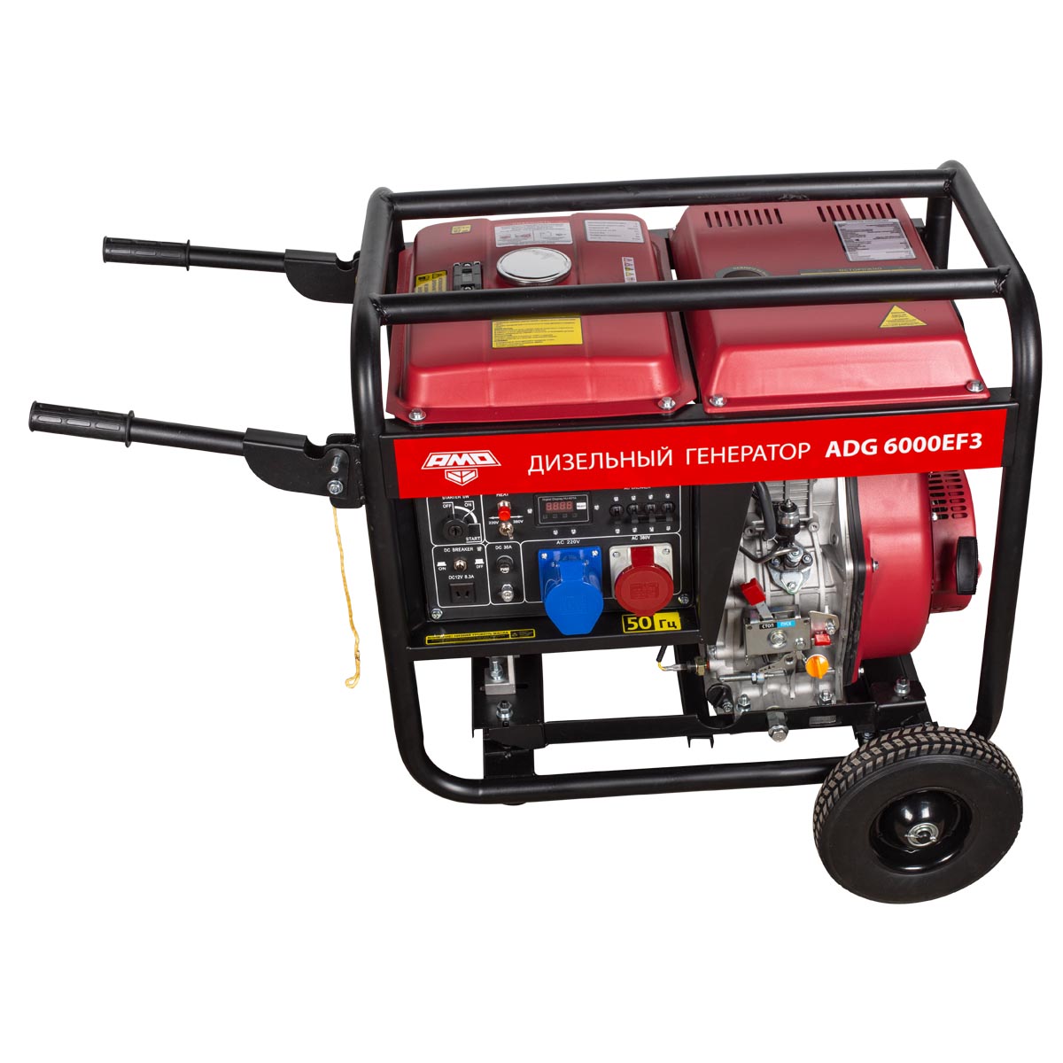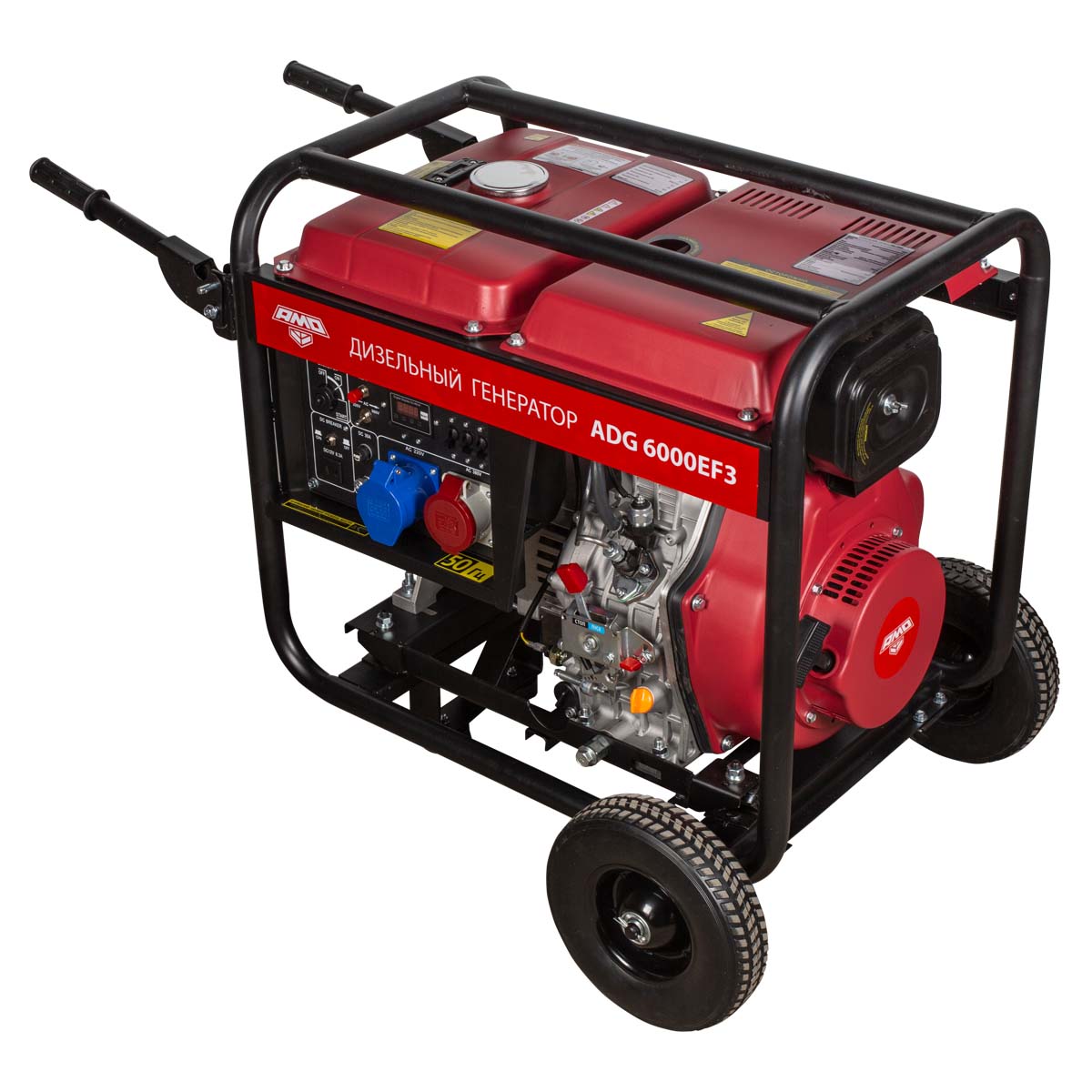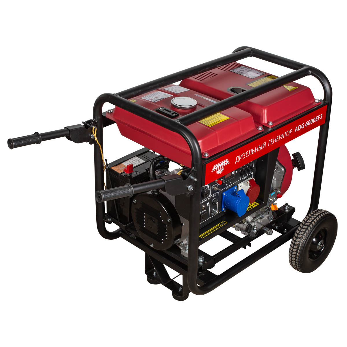 Дизельный генератор AMO ADG 6000EF3 — универсальная мобильная электростанция, мощностью 5,5 кВт, главное преимущество которой заключается в возможности переключения режимов работы альтернатора между 220В и 380В. На практике такая особенность означает, что: