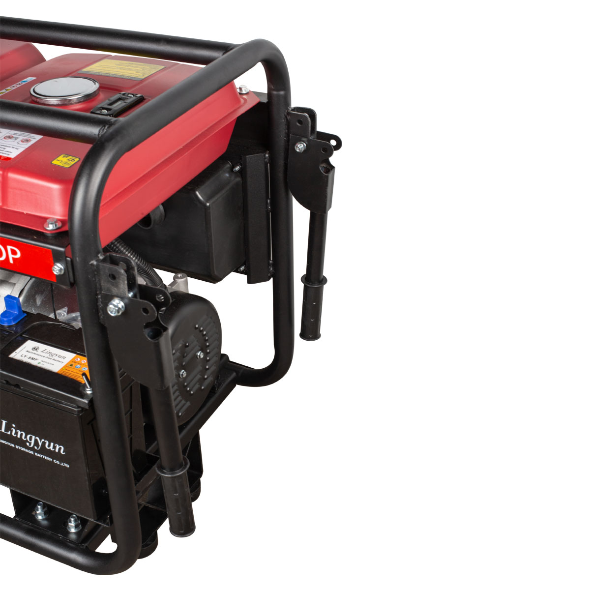 Транспортировочный комплект из ручек и колес значительно упрощает перемещение агрегата и разгрузочно-погрузочные операции. Колеса увеличенного, по сравнению со стандартной моделью, размера лучше справляются с неровностями, а опорные площадки с амортизирующими подушками гасят вибрации от работающего двигателя и препятствуют опрокидыванию.