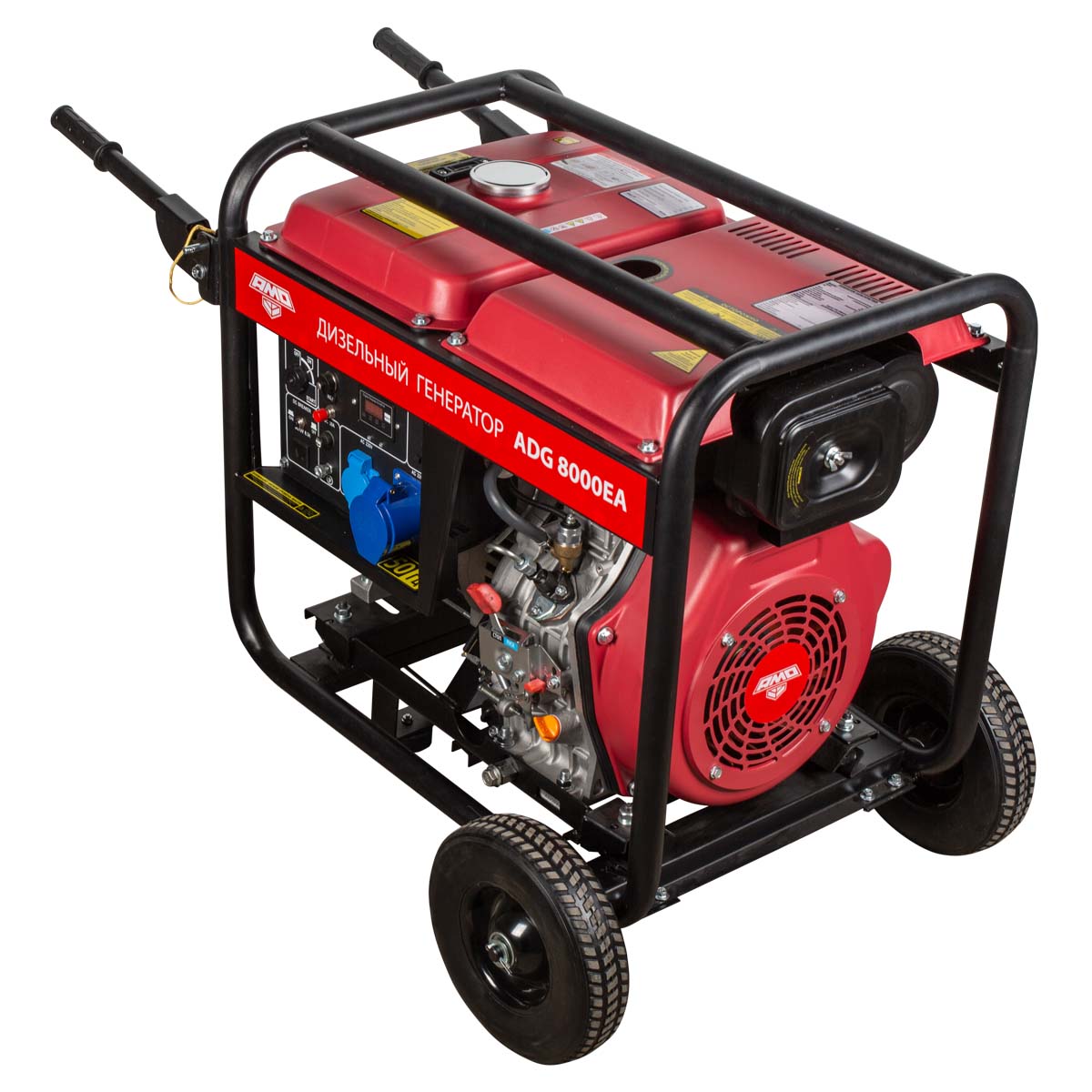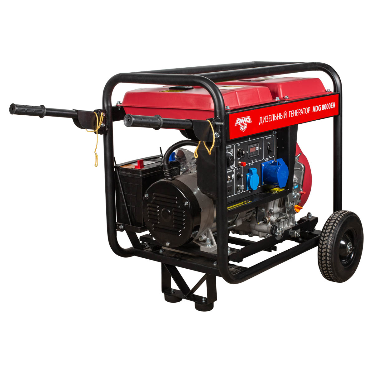 Дизельный генератор AMO ADG 8000EA — автономный источник энергии мощностью 7,5 кВт, при помощи которого можно организовать электропитание сразу нескольких инструментов или создать систему резервного энергоснабжения жилого дома.