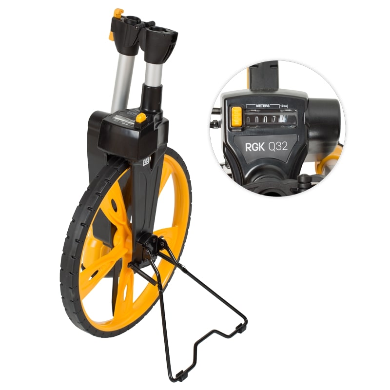 Дорожное колесо RGK Q32 диаметром 320 мм предназначено для измерения расстояний на всех видах поверхностей с точностью 10 сантиметров. Благодаря механическому счетчику, прибор сохраняет точность в условиях высокой влажности и запыленности.