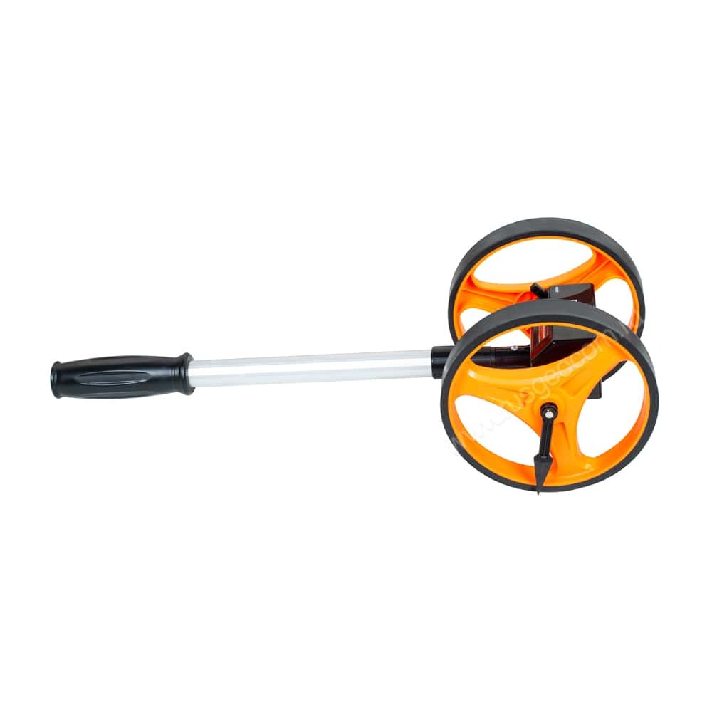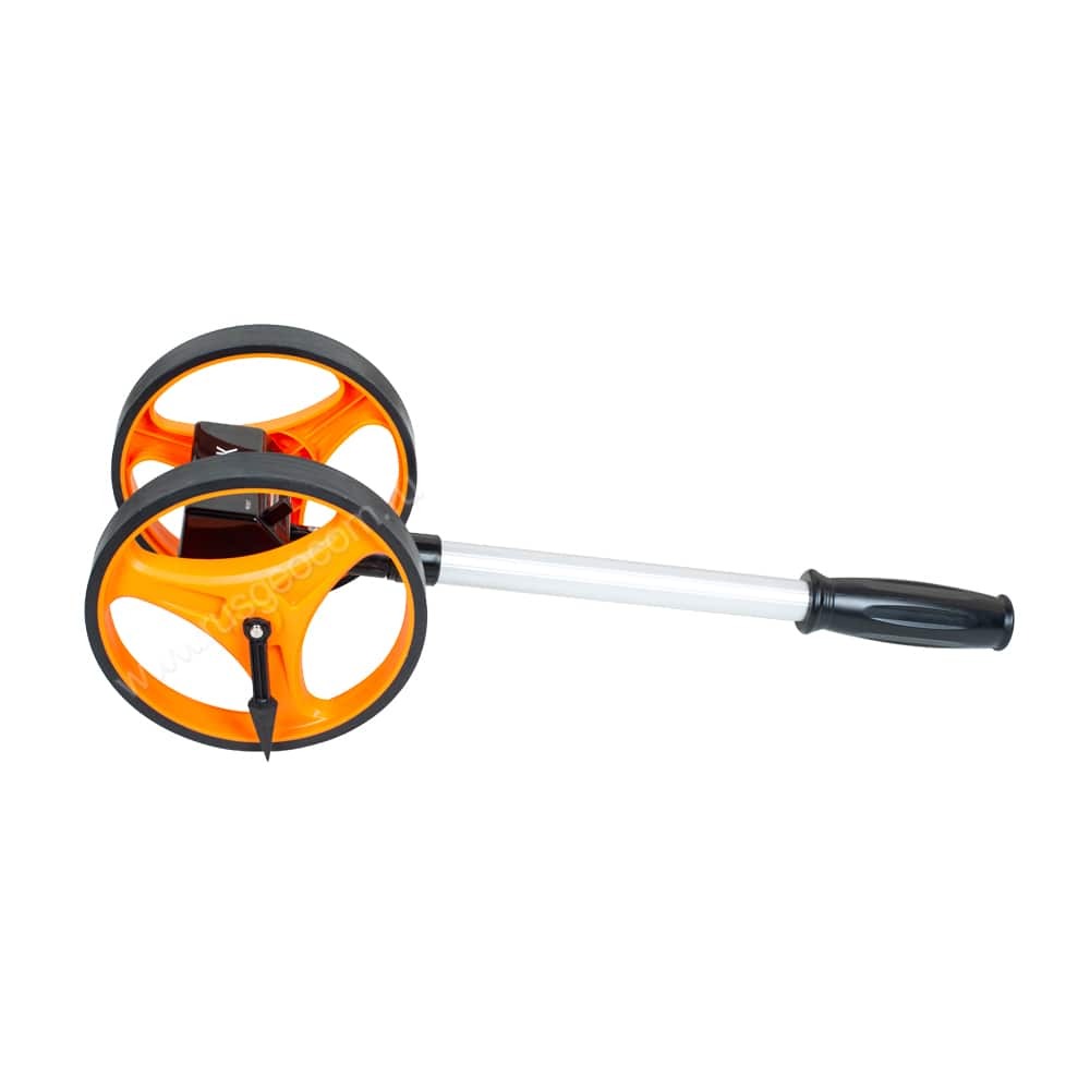 Инструмент позволяет фиксировать расстояния до 9999.9 м с шагом 0.1 м и точностью ±0.5%. Конструкция основана на 2 колесах диаметром 159 мм. Такая схема вкупе с прочной резиновой шиной обеспечивает отличное сцепление с поверхностью, что положительно сказывается на качестве показаний дорожного курвиметра RGK Q5.