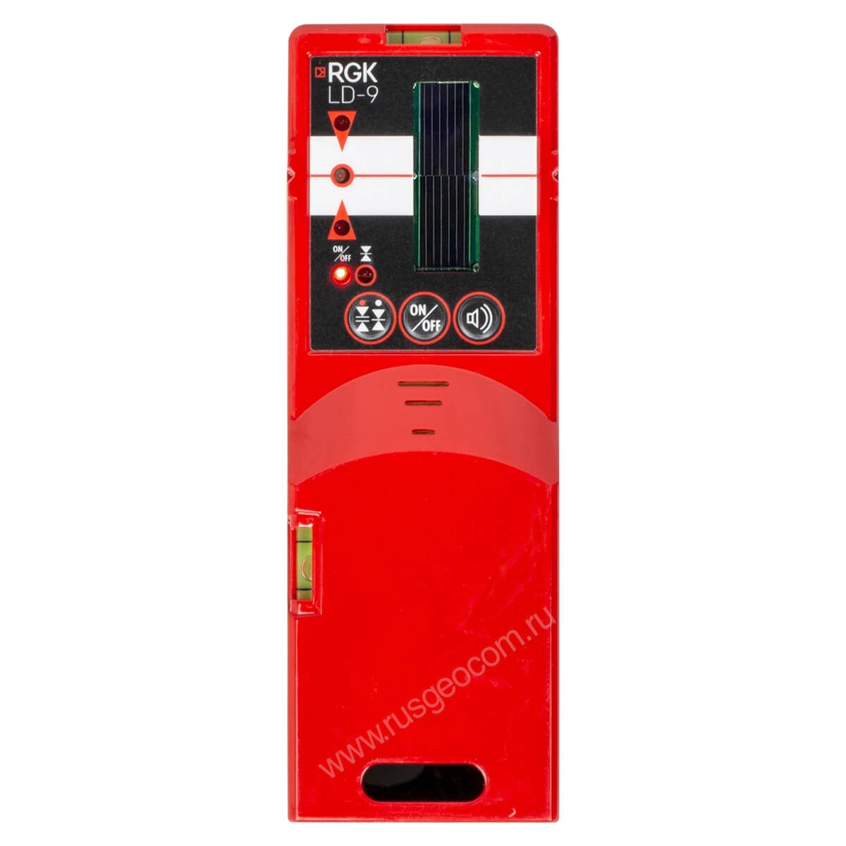 Универсальный приемник излучения RGK LD-9 с односторонним дисплеем для лазерных нивелиров (построителей плоскости) позволяет работать с приборами, когда лазерная плоскость невидима, а также служит для увеличения рабочего диапазона лазерных нивелиров до 50-70 м. Работает с красным и зеленым цветами лазеров.