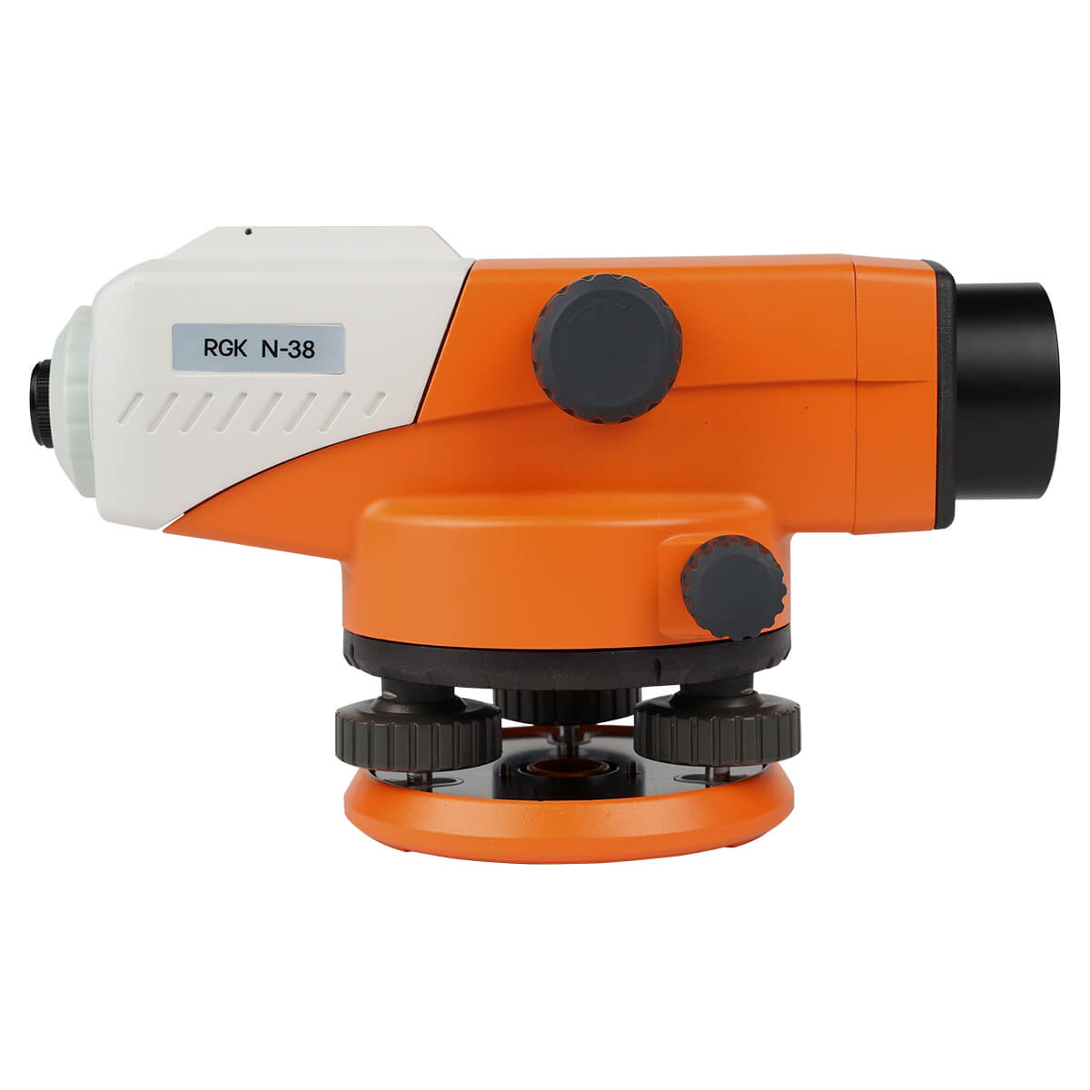 Быстрое первичное наведение на удаленные точки оптический нивелир RGK обеспечивает с помощью визирного приспособления, выполняющего роль прицела. RGK N-38 оснащён светосильным объективом диаметром 46 мм, позволяющим осуществлять измерения при слабой освещенности: в пасмурную погоду, при выполнении работ в подвалах, тоннелях, шахтах и т.п.