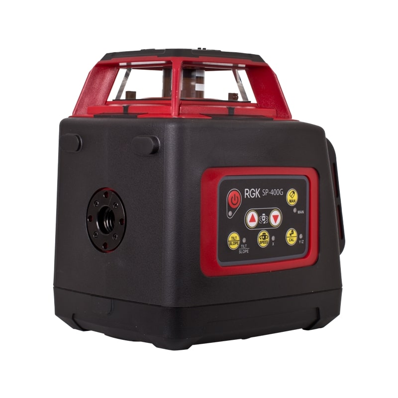 Приёмник лазерного излучения. Эффективная дистанция работы в 200 м обеспечивается за счёт специального приёмника, поставляемого в комплекте с RGK SP-100. Приёмник оснащён опцией выбора точности ±1,5 мм или ±2,5 мм на 40 м. Это позволяет достигать повышенной скорости или точности выполнения работ в зависимости от текущей необходимости.