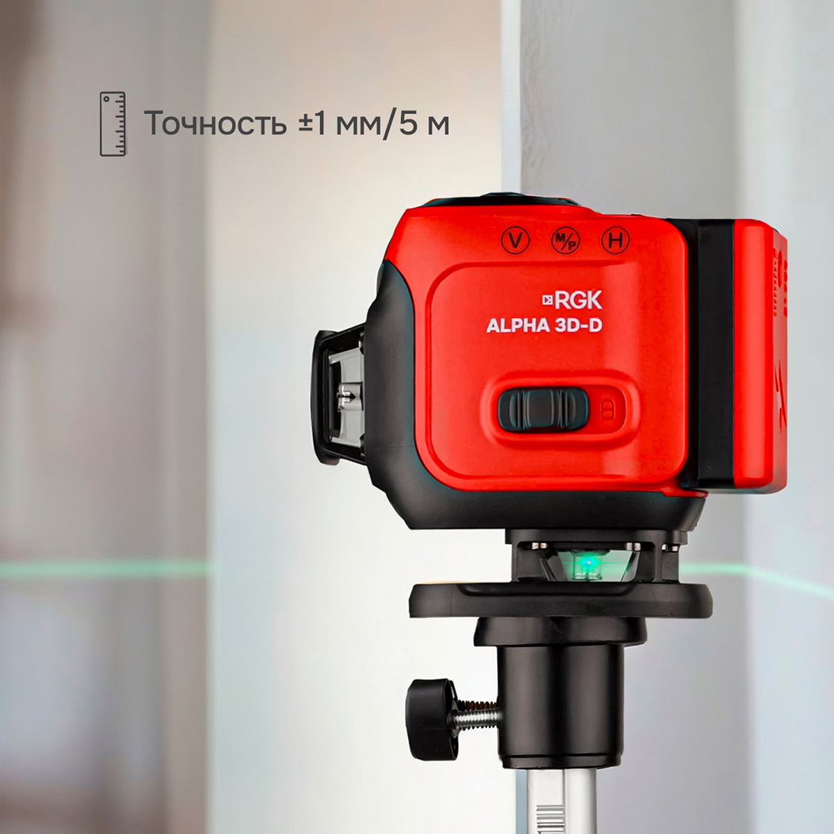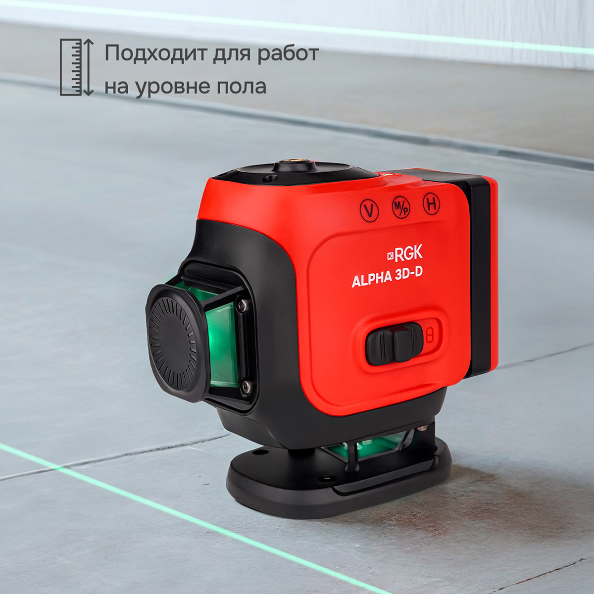 Лазерный уровень RGK ALPHA 3D-D с калибровкой с зелёным лучом