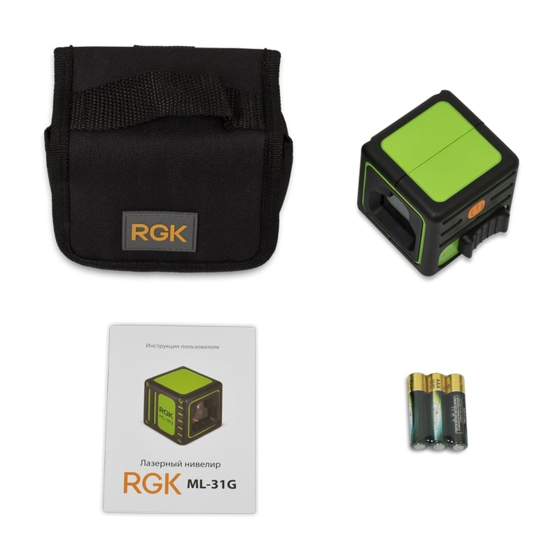 Лазерный уровень RGK ML-31G, Батарейки — 3 шт. (3 шт.), Чехол, Инструкция