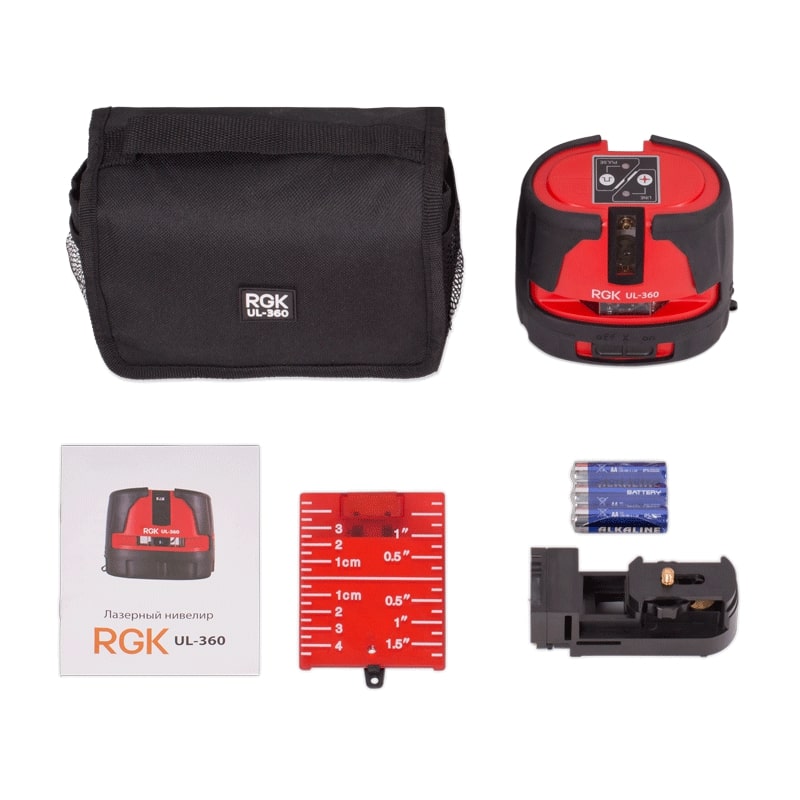 Лазерный уровень RGK UL-360, Магнитное крепление, Батарейки — 3 шт. (3 шт.), Мишень, Чехол, Инструкция