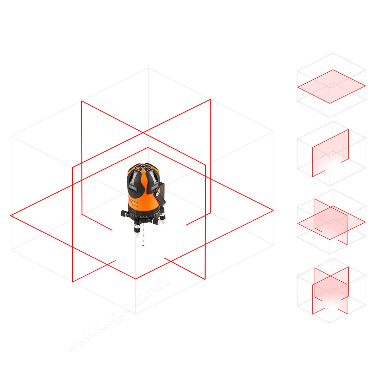 Лазерный уровень RGK UL-44W оснащается специальным лазером увеличенной мощности и проецирует четыре вертикальных и горизонтальную плоскость с разверткой 360°. Линии, которые строит этот лазерный нивелир, отлично видны при любом освещении на дистанции до 20 метров, а с использованием приемника лазерного излучения – до 50 метров. Корпус UL-44W + штанга-упор RGK CG-2 имеет поворотную конструкцию и оснащен двумя винтами наводки и горизонтальным лимбом, что в сочетании с широкой разверткой позволяет избежать перестановок прибора, а, значит, и потери точности.