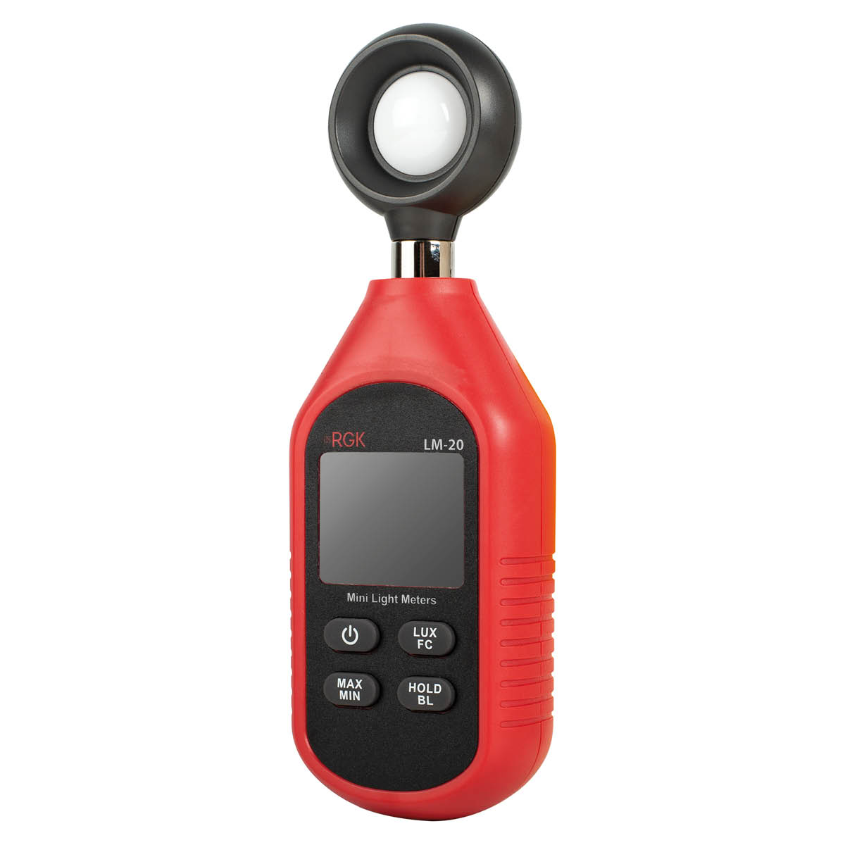 Люксметр RGK LM-20 — это портативное устройство для проверки уровня освещенности в помещениях. Предел измерений составляет 199999 LUX, при точности от ±4%. Кремниевый фотоэлемент этой модели работает в видимом спектре и фиксирует свет, исходящий от искусственных и естественных источников. Основные сферы применения — измерение освещенности офисных, производственных, учебных и других помещений, тестирование расчетных показателей при монтаже осветительных систем и др.