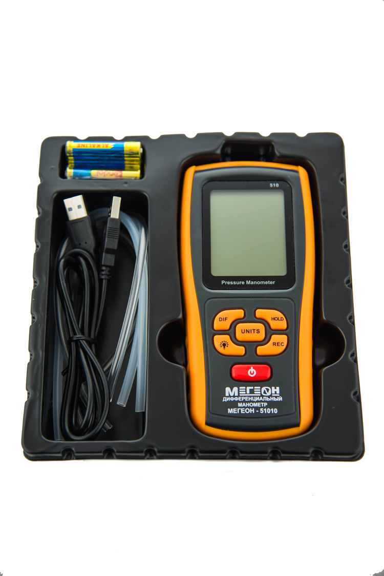 Манометр Мегеон 51010 поддерживает следующие единицы измерения давления: Бар, МБар, дюйм ртутного столба, мм. ртутного столба, фут водного столба, унц-сила/дюйм2, фунт/дюйм2, кг-сила/см2, кПа, дюйм водного столба, см. водного столба. Данный манометр оснащен USB — портом, что в свою очередь позволяет сохранять результаты измерений на съемный носитель для дальнейшей обработки на ПК,