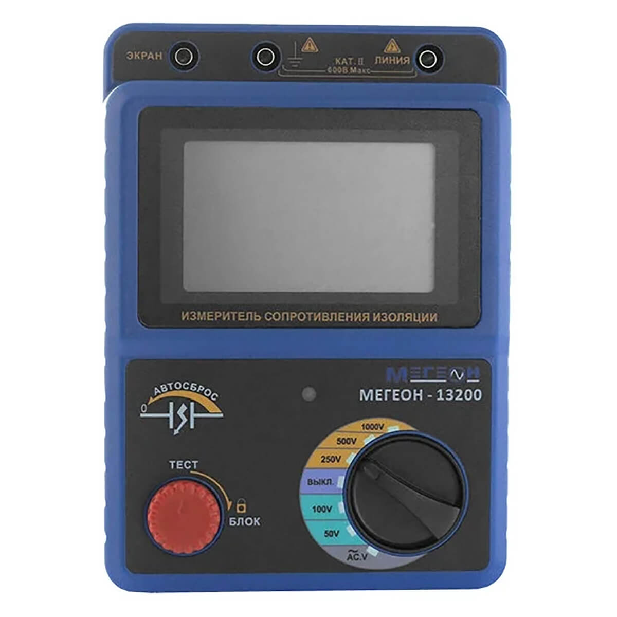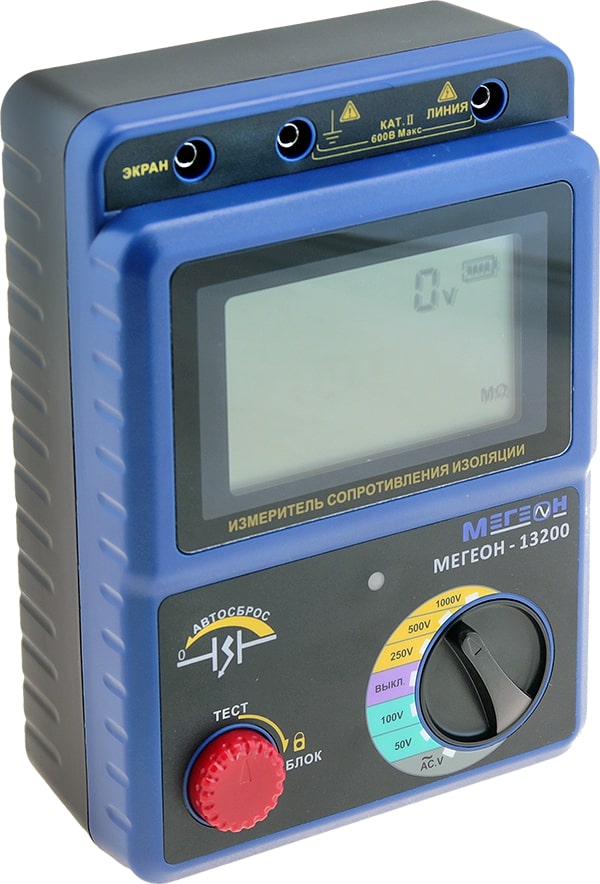 Измеритель сопротивления изоляции МЕГЕОН 13200 представляет собой портативный прибор для измерения сопротивления изоляции с использованием высоких значений испытательных напряжений ( до 1000 Вольт). Измеритель сопротивления изоляции (мегаомметр) внесен в государственный реестр СИ, под номером 74507-19, срок периодической поверки составляет два года.
