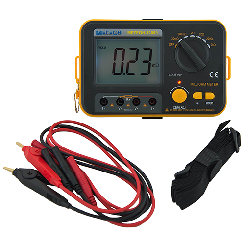 Мегеон 13080 дает возможность измерять сопротивление нагревательных элементов, различных проводников, а также сопротивление в местах пайки. Прибором очень просто пользоваться, все элементы управления расположены на фронтальной панели прибора. Стандартный комплект поставки включает в себя ремешок, который позволяет закрепить прибор на плече и не держать его руками во время измерений.
