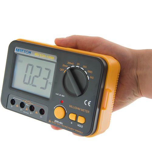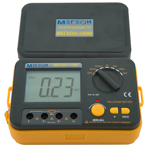 Милиомметр Мегеон 13080 идеально подойдет для измерения сопротивления следующих устройств: контакты силовых резисторов, печатных плат, антенн, кабелей, электрических станков, катушек разгона и другого электрооборудования.