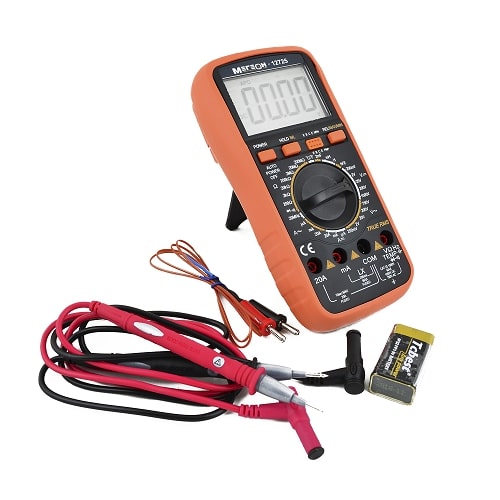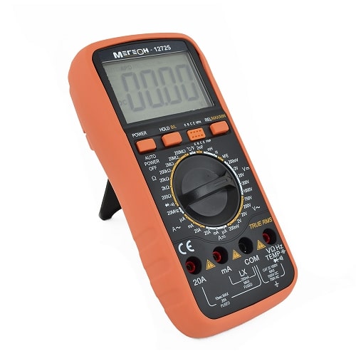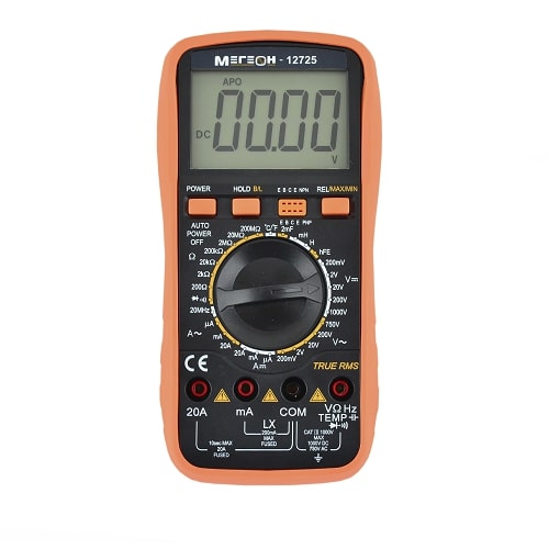 Надежный и высокоэффективный цифровой мультиметр МЕГЕОН 12725 (TrueRMS) предназначен для измерения переменного (True RMS) и постоянного напряжения, переменного (True RMS) и постоянного тока, сопротивления, емкости конденсаторов, индуктивности, частоты, температуры (шкала Цельсия/Фаренгейта), проверки диодов, проверки транзисторов и прозвонки соединений. Для улучшения считывания показаний в приборе применен жидкокристаллический дисплей 3½ разряда, с высотой цифр 42 мм. Мультиметр МЕГЕОН 12725 имеет защиту от перегрузки на всех режимах, функцию автоматического выключения питания и эргономичный корпус с защитным чехлом, который делает эксплуатацию прибора более удобной. В основу прибора положена БИС АЦП с двойным интегрированием. Этот превосходный измерительный прибор идеально подходит для лаборатории, производства и домашнего хозяйства.
