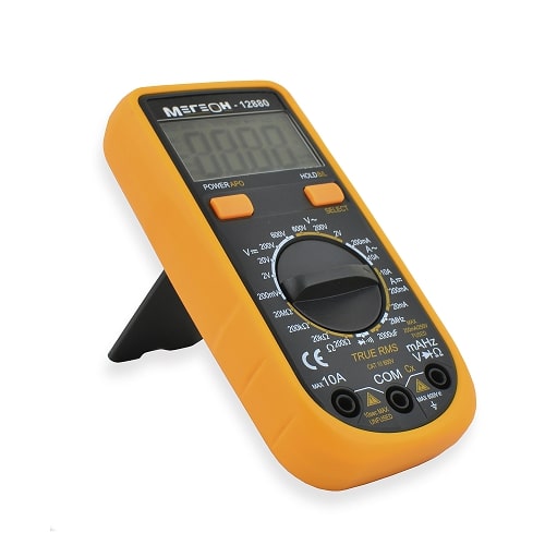 Мультиметр МЕГЕОН 12880 можно установить на столе при помощи упора на задней части изделия, а режим энергосбережения и защиты от перегрузки повышает удобство его эксплуатации.