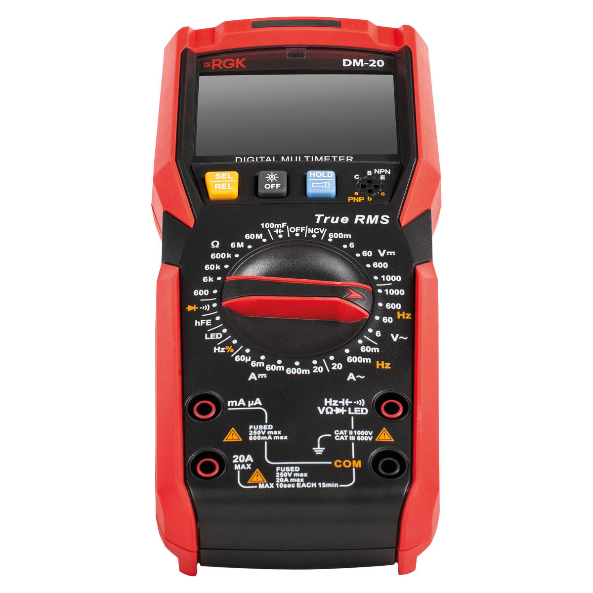 Цифровой мультиметр RGK DM-20 — это надежный и безопасный прибор для измерения целого ряда параметров электросетей и оборудования, прозвонки цепей, тестирования различных компонентов электроприборов. Благодаря широкому арсеналу функций и измерительных режимов эта портативная модель может использоваться как в быту, так и в таких профессиональных отраслях, как строительство, сервисное обслуживание и др.