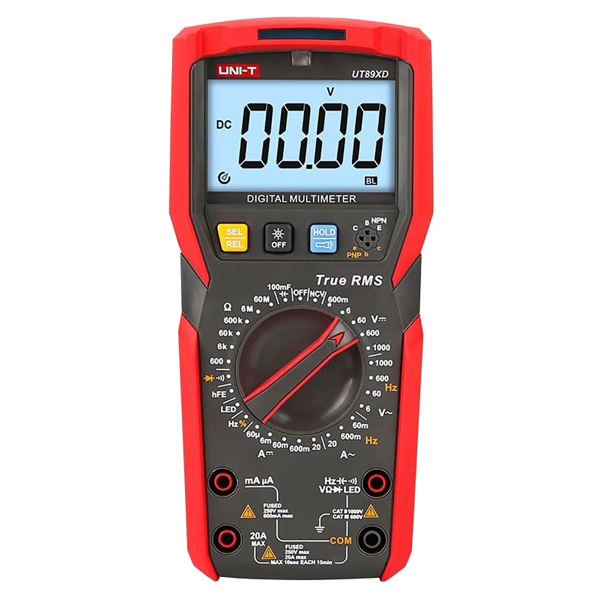 Универсальный цифровой мультиметр UNI-T UT890D+ используется для измерения постоянного и переменного тока, напряжения, сопротивления, емкости и частоты. Также прибор имеет режим прозвонки и теста диодов, что увеличивает возможности.