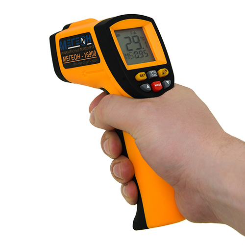 Компактный пирометр Мегеон 16900 представляет собой дистанционный измеритель, который позволяет измерять температуру исследуемого объекта без контакта с ним. Благодаря эргономичному корпусу и удобному расположению элементов управления, пользоваться пирометром Мегеон 16900 очень просто. Прибор оснащен функцией автоматического отключения при длительном простое. Также стоит отметить, что данный пирометр использует эффективную схему питания, которая позволяет производить измерения непрерывно в течение 22-х часов без замены элемента питания.