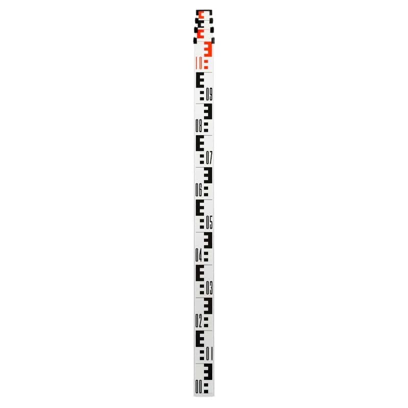 TS-4 – алюминиевая нивелирная рейка высотой 4 м. С одной стороны рейки имеется точная миллиметровая шкала, с другой — Е-градуировка. В комплект входит чехол и пузырьковый уровень.