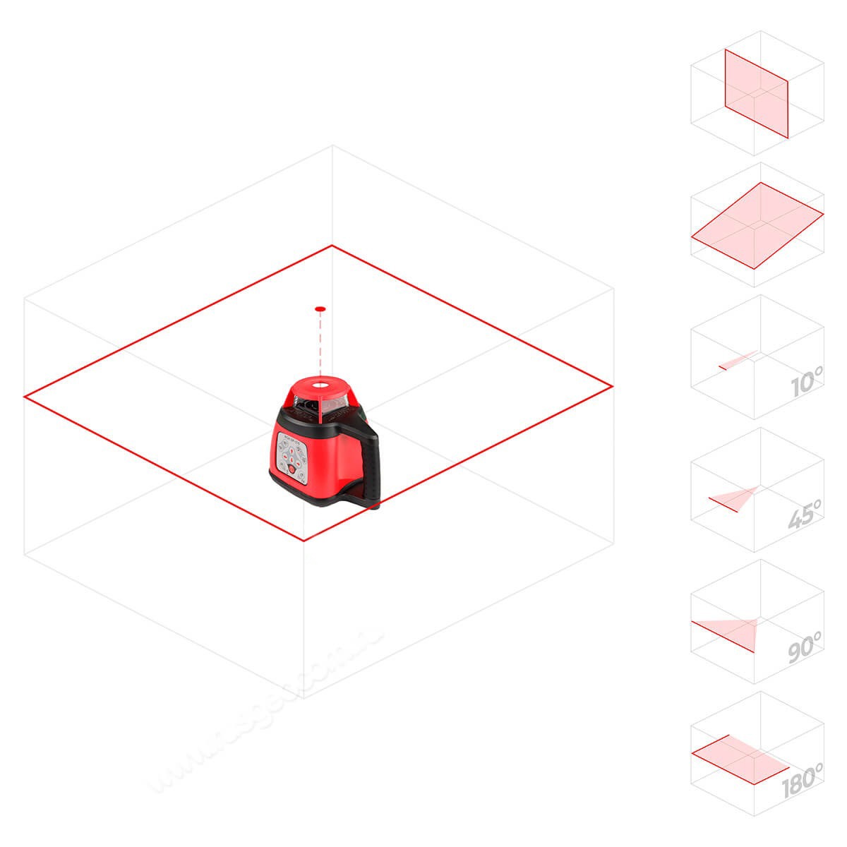 Ротационный нивелир RGK SP-310 — этот профессиональный лазерный прибор, который с точностью 1мм на 10 метров строит плоскость с развёрткой на все 360°C, что полностью исключает необходимость перестановки или поворота. Благодаря ротационному механизму, лазерная система нивелира обеспечивает большую дальность работы: мощный лазер II класса вращается вокруг своей оси, в сочетании с приёмником излучения обеспечивая дальность работы в радиусе 150 м вокруг прибора. Помимо полного вращения, нивелир имеет функцию построения сегмента заданного угла.