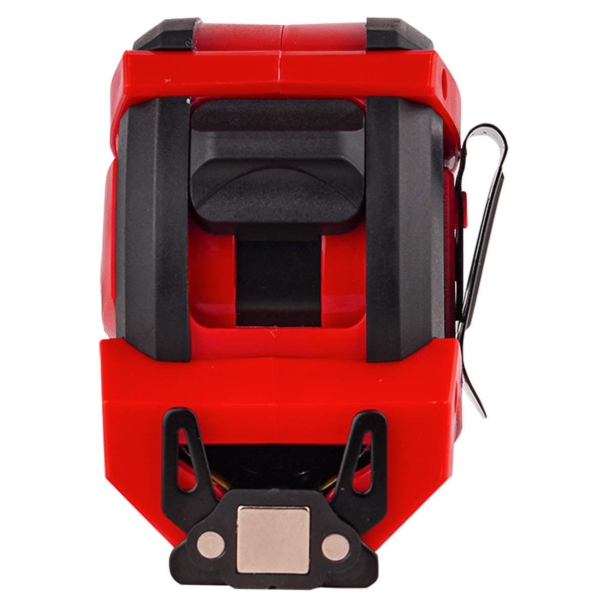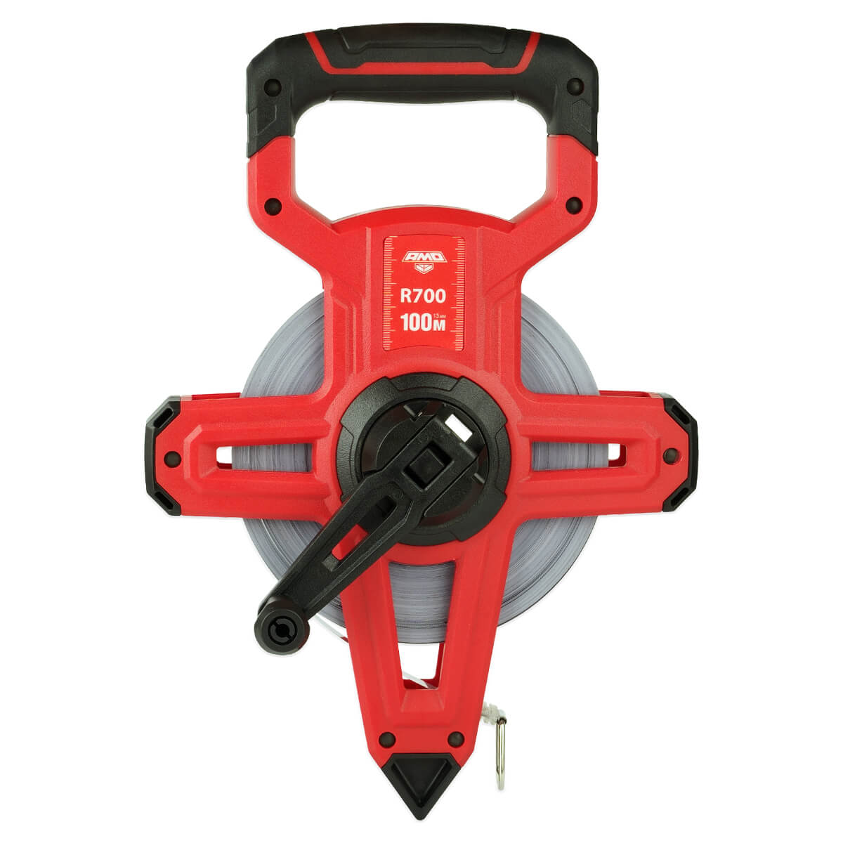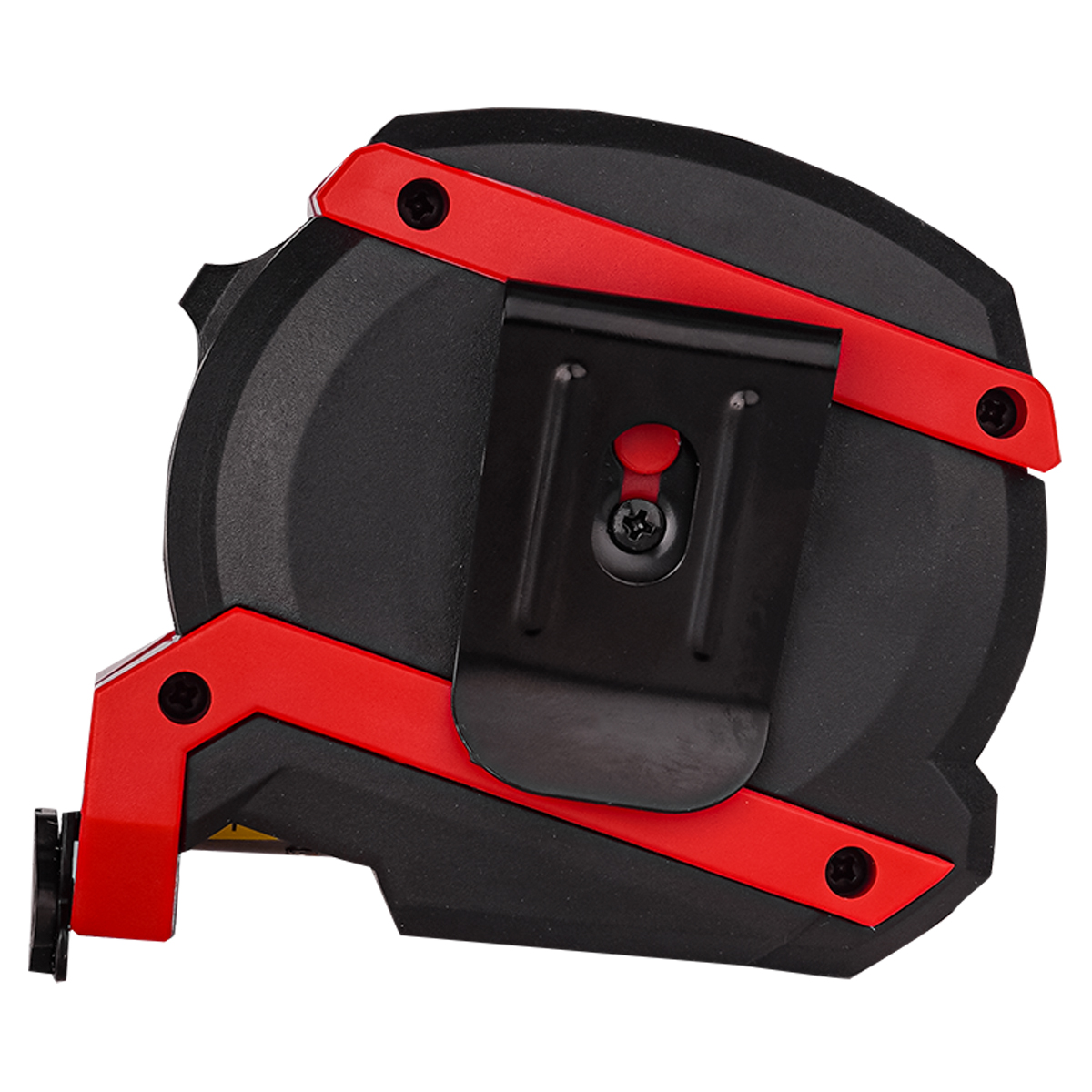 Мерная лента шириной 32 мм, изготовленная из неподверженной растяжению углеродистой стали, обладает достаточной жесткостью в рабочем положении. За счет вогнутой формы, она не заламывается при значительном вылете. Благодаря этому поддерживается прямолинейность полотна с миллиметровой разметкой, что не только облегчает обмеры, выполняемые в одиночку, но и позволяет производить с помощью рулетки AMO R105 с широкой лентой простые разметочные работы, как обычной линейкой. Для упрощения закрепления края ленты за внешние грани предметов, находящихся на большом удалении от пользователя, торцевая часть измерителя снабжена двусторонним усиленным зацепом увеличенного размера. Возможность фиксации нулевой точки отсчета рулетки на стальных конструкционных элементах обеспечивают плоские неодимовые магниты.