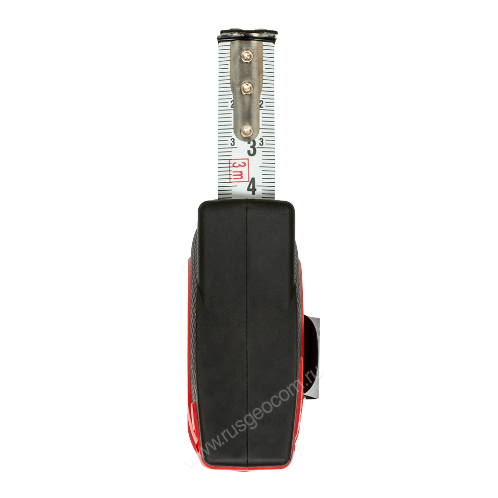 Металлический зацеп, размещенный на конце полотна рулетки RGK RL3 (с поверкой), снабжен магнитом и легко цепляется за металлические конструкции. Лента размечена с обеих сторон для большего удобства работы и считывания показаний под разными углами.