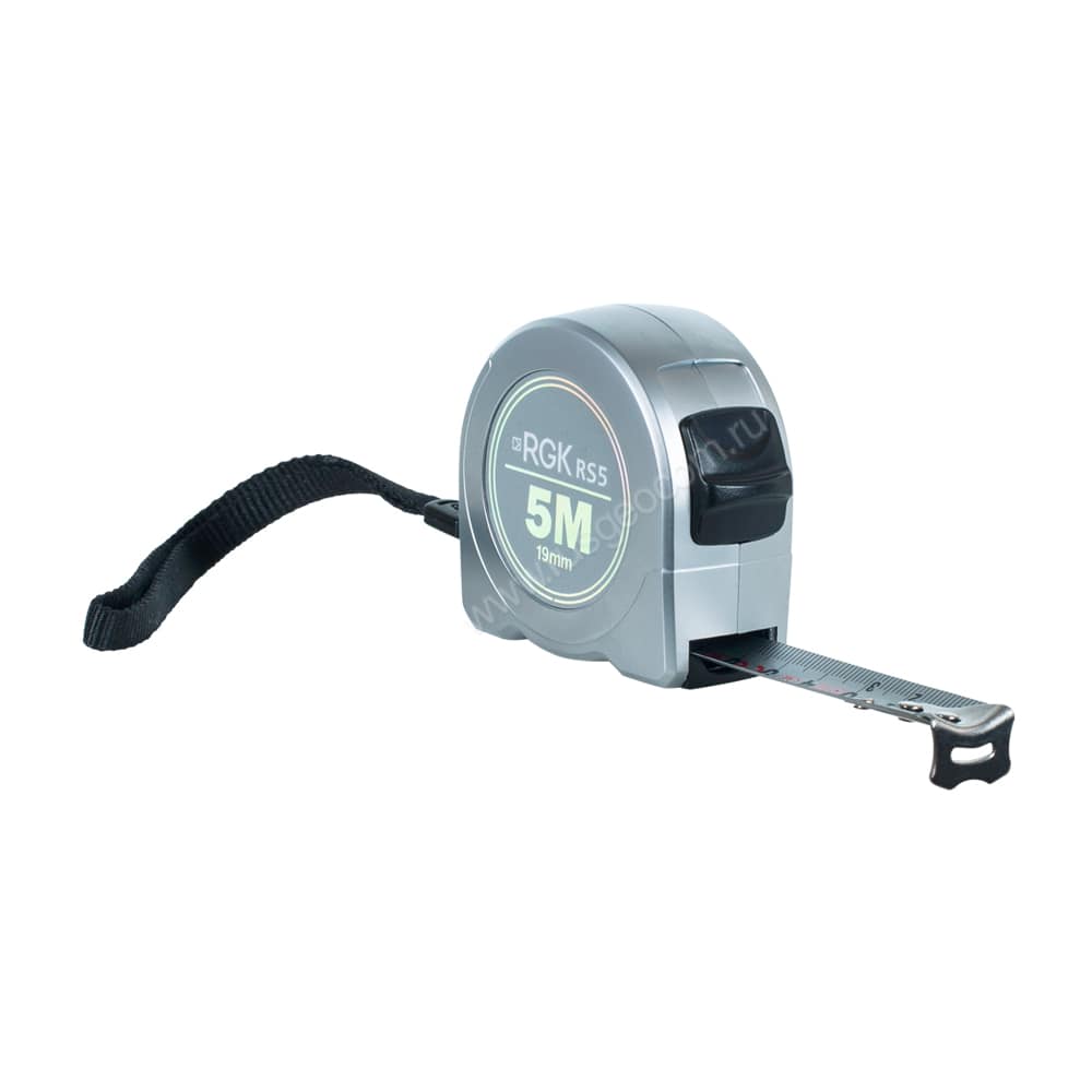 Рулетка RGK RS5 (с поверкой) — надежный инструмент для линейных измерений, разметки и проверки размеров при проведении строительных, столярных и других работ.