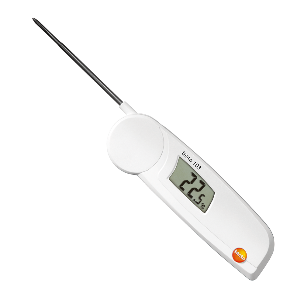 - Складной термометр testo 103 отличается удобством в применении, гигиеничностью и универсальностью при измерении температуры пищевых продуктов.