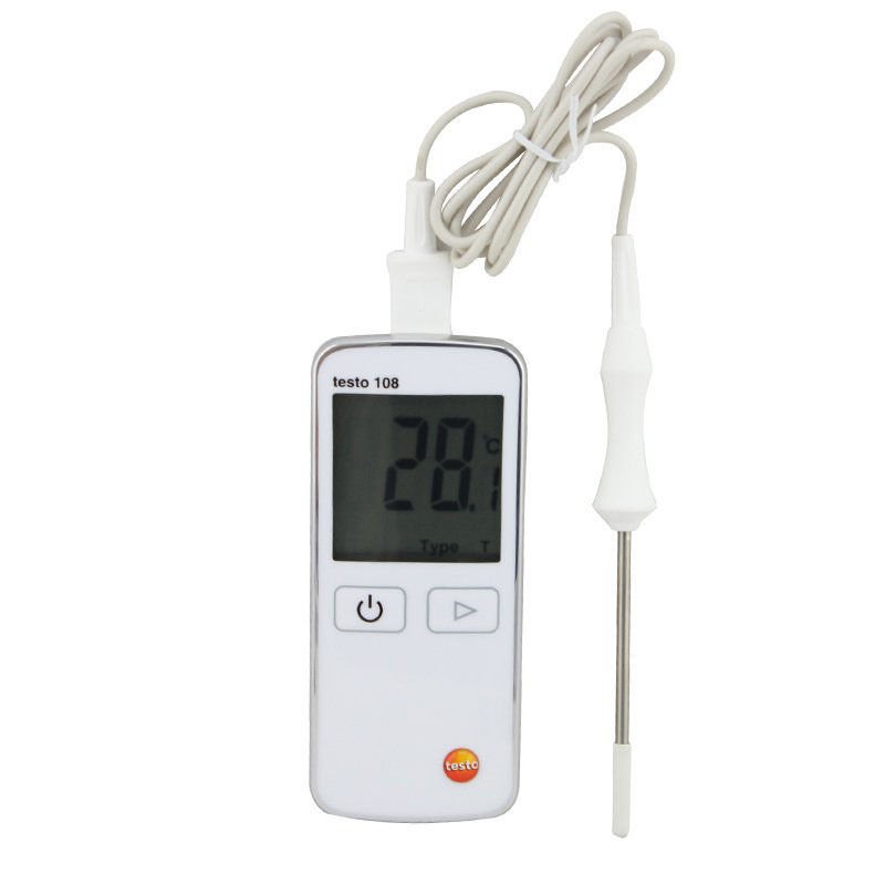 Водонепроницаемый термометр testo 108 (с т/п типа T и K), Проникающий зонд (т/п типа T), Чехол Softcase, Батарейки, Заводской протокол калибровки