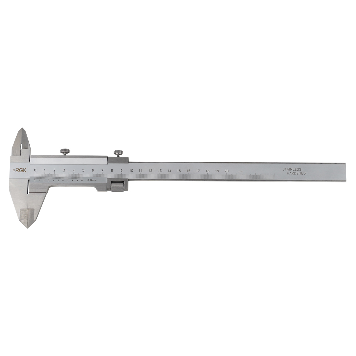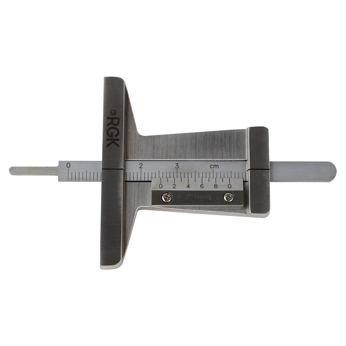 Нониусная шкала на 10 делений закреплена на рамке двумя винтами. Благодаря этому при истирании концевой части измерительной штанги можно выполнять юстировку и калибровку штангенглубинометра RGK SCGM-30, продлевая его срок службы. Для упрощения и ускорения считывания показаний четные штрихи нониуса снабжены цифровой маркировкой.