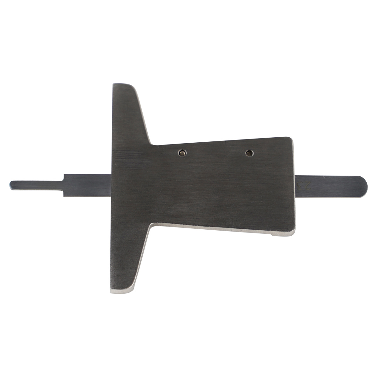 Рамка выполнена с фрезерованным металлическим основанием шириной 55 мм. Центровочные риски около опорной плоскости и в верхней части рамки позволяют контролировать перпендикулярность при выполнении разметки. За счет зауженного окончания цельной выдвижной штанги на расстоянии 13 мм от измерительного торца, с шириной 2 мм, обеспечивается возможность измерения глубины малоразмерных впадин и выемок.