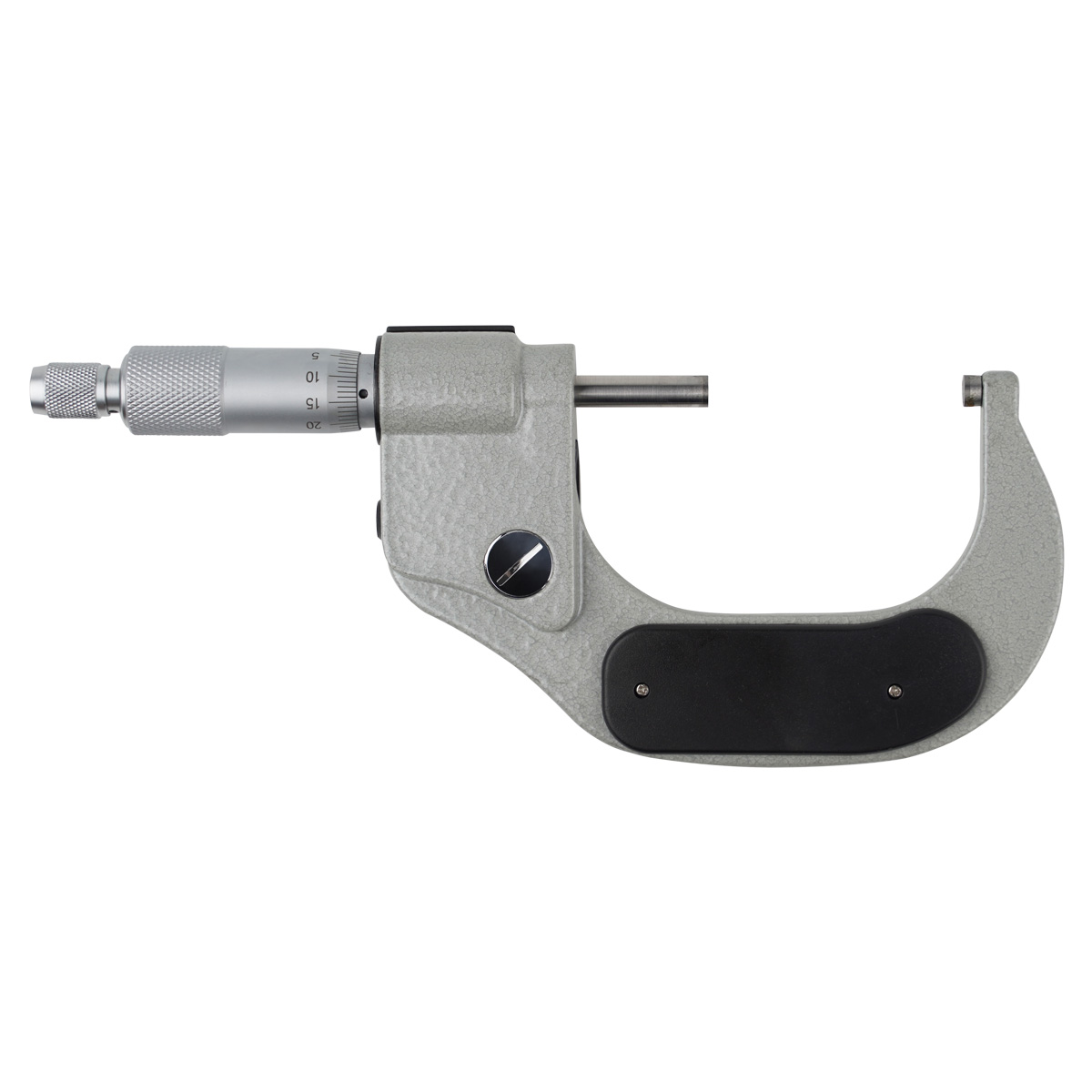 Электронный микрометр RGK MC-75 снабжен не только цифровым, но и обычным механическим отсчетным приспособлением со шкалами на стебле и барабане, обеспечивая возможность выполнения измерений наружных размеров в диапазоне от 50 до 75 мм. Изделие оборудуется скобой с внутренним вырезом шириной 81 мм и глубиной 45 мм относительно оси 6,5-миллиметрового шпинделя микрометрического винта. Прибор поставляется в жестком футляре, с калиброванной 50-миллиметровой установочной мерой и специальным ключом для перенастройки начального положения механического отсчетного устройства.