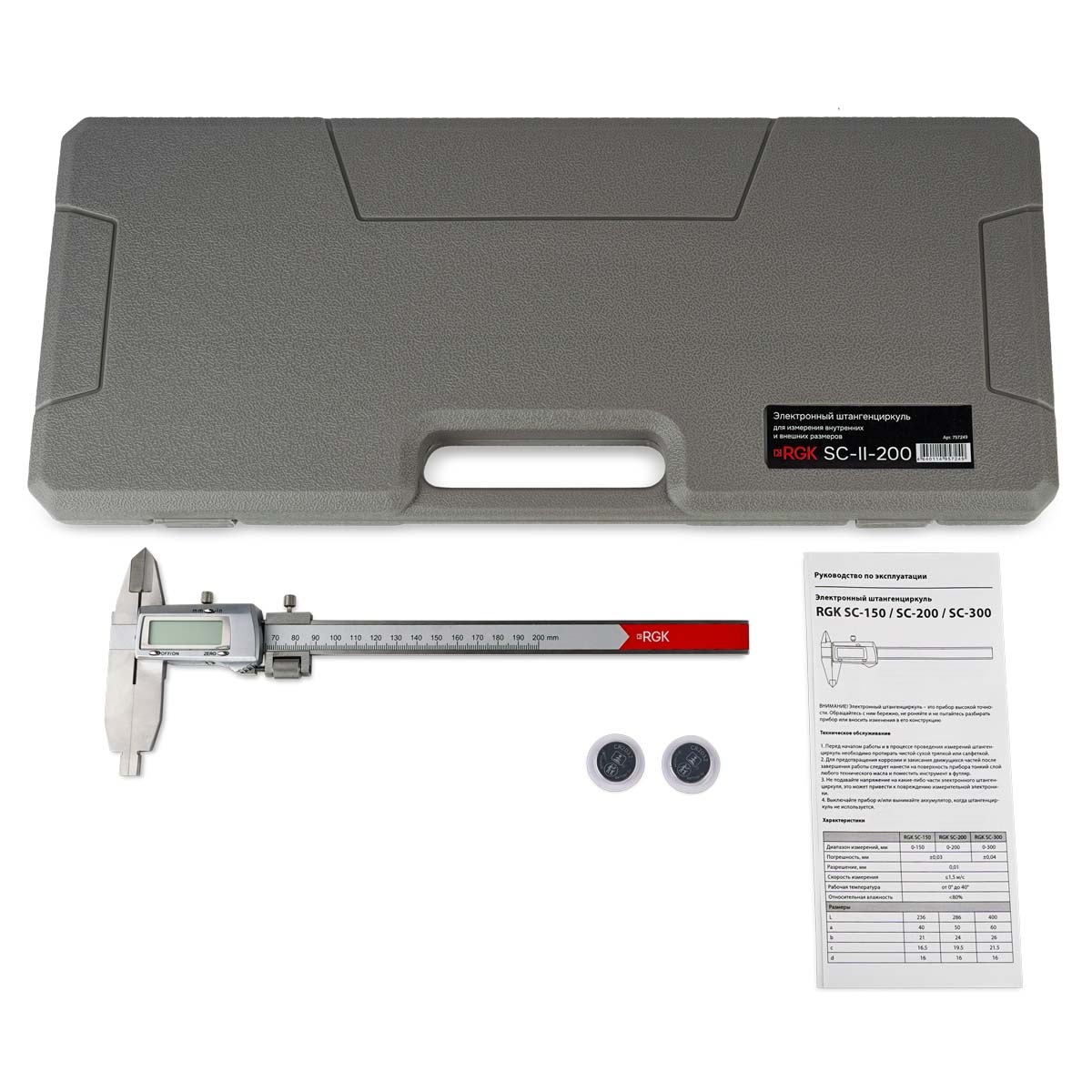Электронный штангенциркуль RGK SC-II-200 является полным аналогом модели ШЦЦ-II-200-0,01 согласно ГОСТ 166 и может применяться для контроля внешних размеров деталей и изделий до 200 мм, внутренних размеров и диаметров отверстий от 10 до 200 мм, а также для выполнения разметочных работ при использовании соответствующего опционального приспособления. Цифровая система считывания показаний с ЖК-дисплеем и функцией обнуления, используемой при выполнении относительных измерений, обеспечивает наглядную индикацию результатов в выбранной размерности.