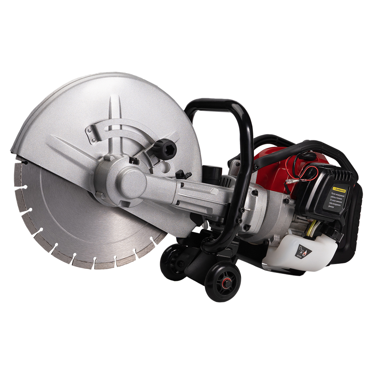 Одной из ключевых особенностей этого бензореза является его мощный двигатель, который развивает мощность в 1900 Вт. Благодаря этому, пильный диск диаметром 350 мм может достигать скорости вращения до 5000 оборотов в минуту. Такие характеристики позволяют выполнять резку с высокой эффективностью и точностью.